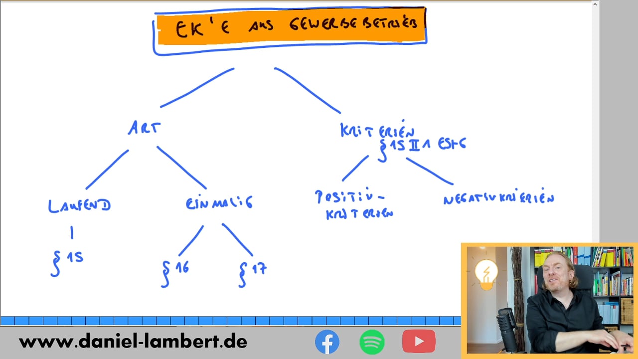Zunächst geht es um vier Positiv- und drei Negativmerkmale, die erfüllt sein müssen, damit Einkünfte aus Gewerbebetrieb vorliegen. Danach reden wir speziell über die laufenden Einkünfte aus Gewerbebetrieb. Die einmaligen folgen dann später.